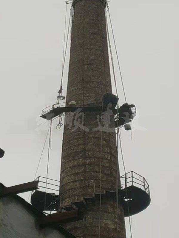 煙囪施工完成后即可拆除電動(dòng)吊籃。