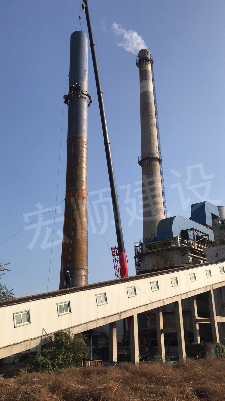 鋼煙囪新建安裝工程組裝過程-宏順建設