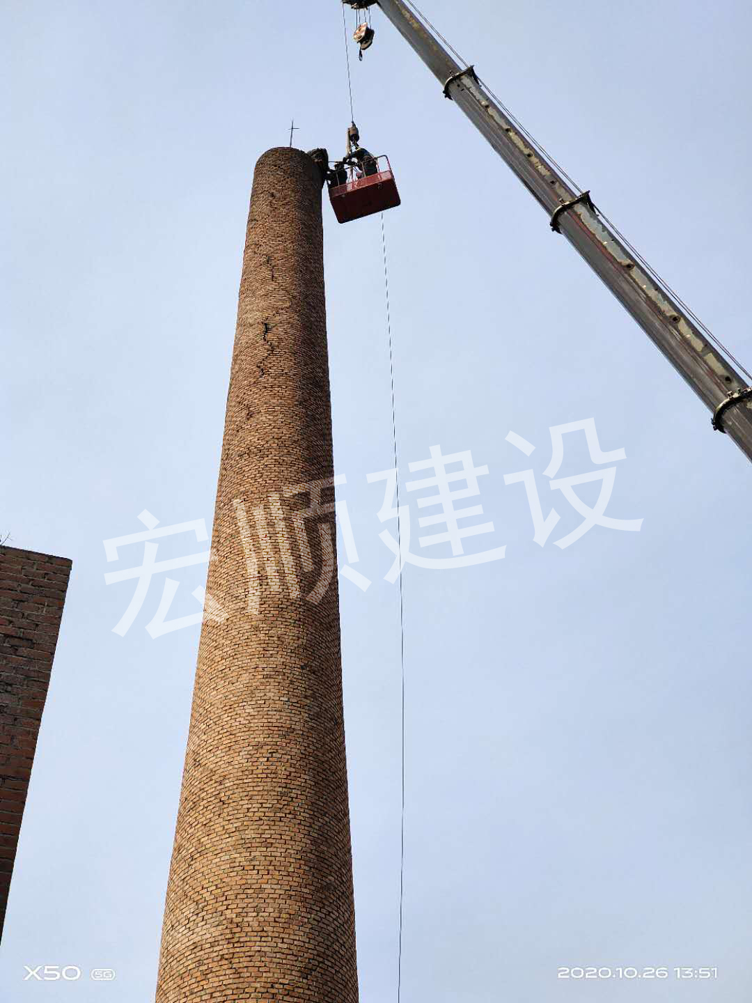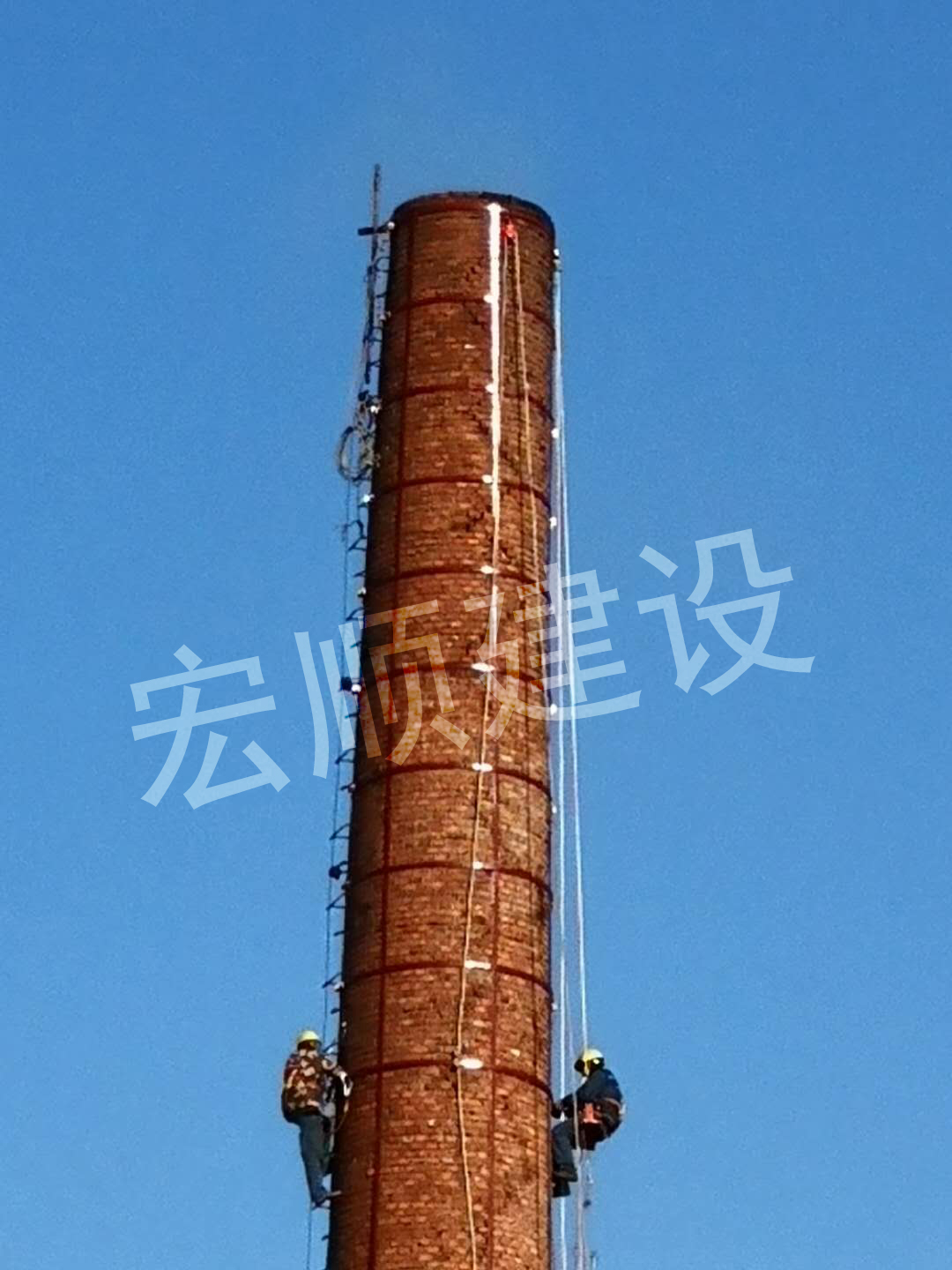 宏順建設(shè)最新承接了齊齊哈爾當(dāng)?shù)匾粋€(gè)鍋爐房煙囪頂口裂縫需要拆除部分后加固,我們施工前做了這些準(zhǔn)備: