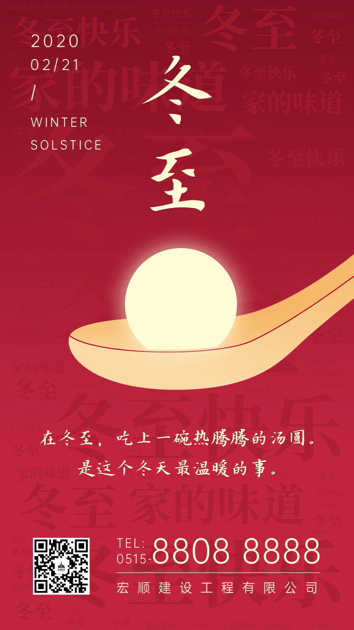 冬至,又稱日短至、冬節、亞歲等,兼具自然與人文兩大內涵,既是二十四節氣中一個重要的節氣,也是中國民間的傳統節日。冬至是四時八節之一,被視為冬季的大節日,在古代民間有“冬至大如年”的講法,所以古人稱冬至為“亞歲”或“小年”。冬至習俗因地域不同而又存在著習俗內容或細節上的差異。在中國南方沿海部分地區,有冬至祭祖、宴飲的習俗。在中國北方地區,每年冬至日有吃餃子的習俗,在北方流傳著“冬至不端餃子碗,凍掉耳朵沒人管”的民諺。